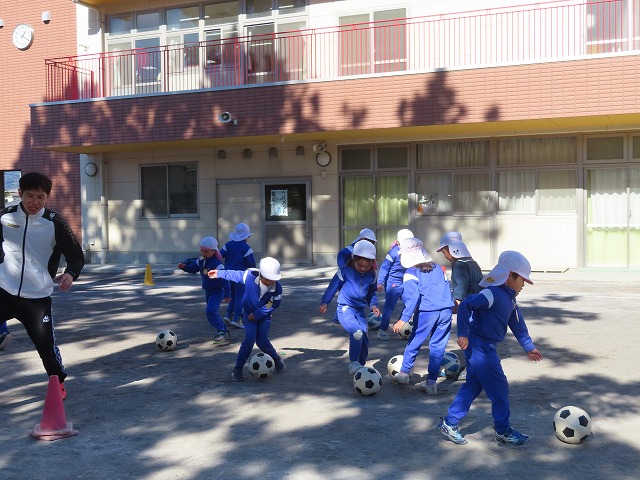 12:45から年長ぞう組さんが小川コーチのサッカー教室を行いました。