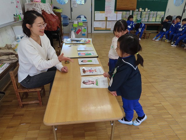 自分の名札を見て名前に「N]のついているか探しました。フィンガーsongを歌いました。