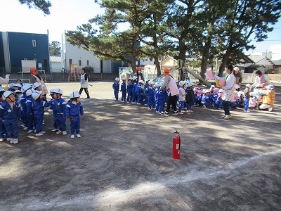 職員が点呼をとって人員の確認ができました。堀部先生から話を聞いて終了しました。りっぱでした。